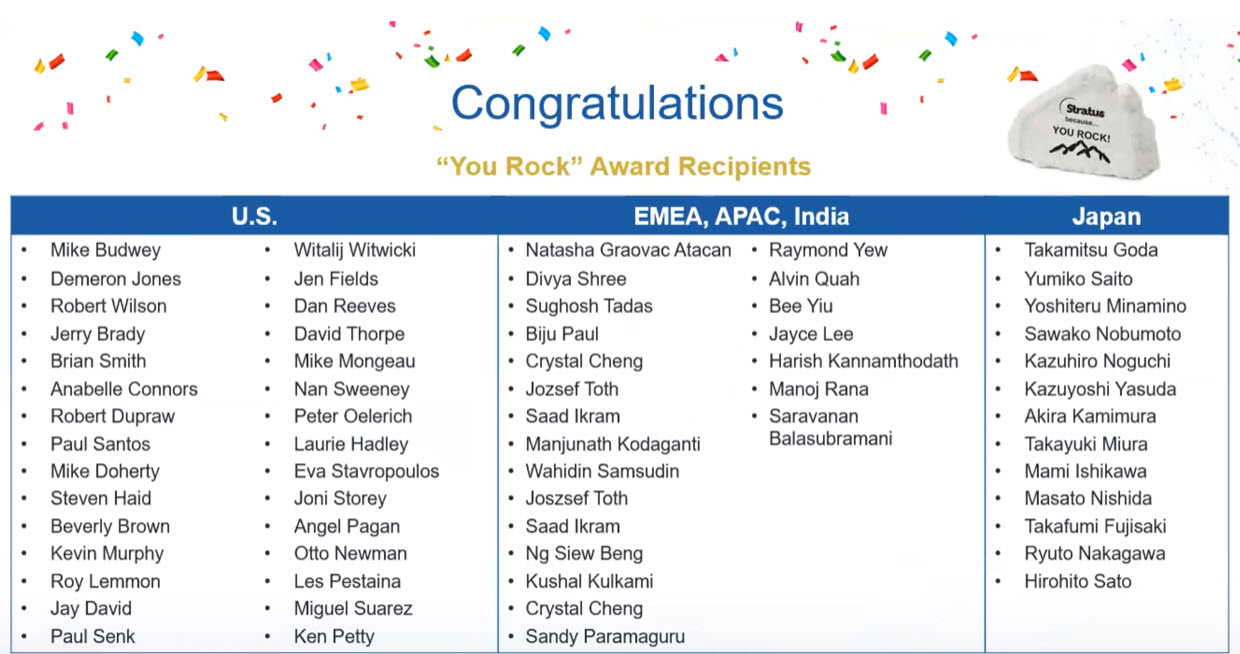 First I’d like to congratulate and recognize all the you rock award winners all the recipients from over the past six months.