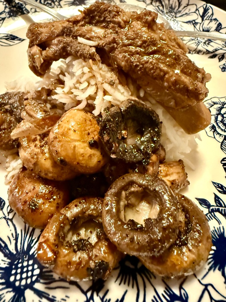 biyernesSilog: nagluto ako ng pork baby back ribs adobeedoobeedoo – dry sweety, not soupy. tapos, sinamahan ko ng ginisang kabute, gamit yung latak na mantika sa adobo. walandyo, ang sarap, mang boy. pwede nang ihain sa ma mom luk. #FloridaManDurukot